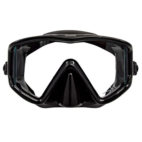 The Rama offers scuba divers and snorkelers a dramatic horizontal field of vision. The wide tempered glass center lens and two small tempered glass side lenses are specifically designed for insane peripheral vision. The Rama provides unmatched field of vision. The double feathered edged skirt provides a second sealing surface which provides the diver a trouble-free fit. Quick disconnect buckles provide ease of use and service.