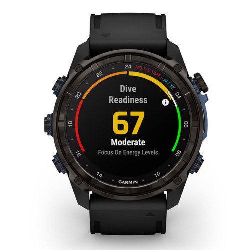 Discover a deeper connection with the Descent Mk3i watch-style dive computer. It features multiple dive modes plus SubWave sonar technology for diver-to-diver communication via preset messages (available with software v.15.70 or later). The device also supports monitoring of tank pressures and depth for up to eight networked divers, when paired with the Descent T2 transceiver (sold separately). Purpose-built specifically for divers, the Descent Mk3i dive computer combines a bright 1.2" AMOLED display with scratch-resistant sapphire lens, 200-meter dive-rated case and metal leakproof inductive buttons. DiveView maps offer bathymetric depth contours and more than 4,000 dive sites to help you find where to dive and get oriented. Plus, a dive readiness tool, developed by Garmin, shows how lifestyle factors such as sleep, exercise, stress and jet lag can affect your body's overall preparedness for diving - so, ultimately, you can make better-informed dive plan decisions (data presented is intended to be a close estimation of metrics tracked).