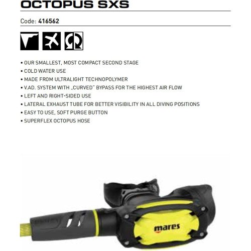 Mares SXS 62X RegulatorThe SXS 62X regulator is incredibly compact and lightweight. SXS stands for S..